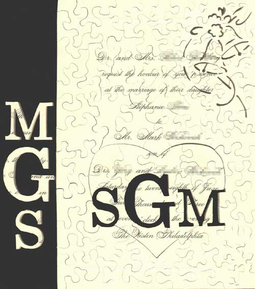 This wedding puzzle was made directly from the customer's invitation to her cousin's wedding, as a gift to the couple-to-be. The personalized monogram was apparently a big hit: