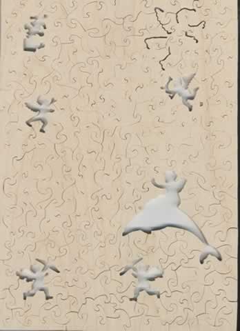 Back of puzzle with figurals removed.
