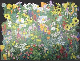 A dizzyingly busy picture makes this puzzle a real challenge. The edge follows the petals of various flowers, and tons of wild critters inhabit the middle of the puzzle, both in the print and as figurals! |
